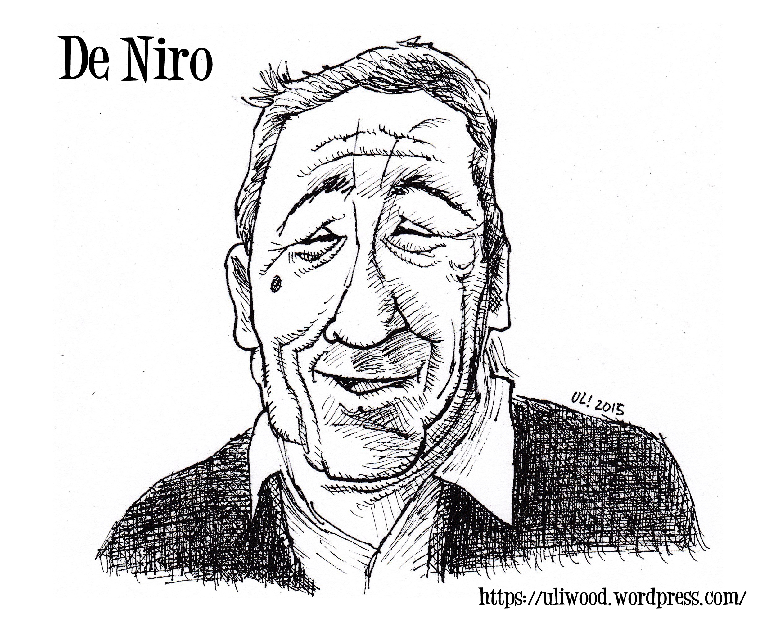 Er ist wahrscheinlich einer der größten Schauspieler überhaupt. Aber für Karikaturisten: Ein Albtraum. Dieser Mensch sieht so fürchterlich normal aus! Doch er hat so eine spezielle Art zu lachen, die mir immer wieder auffällt. Und genau diesem speziellen „De-Niro-Lachen“ widme ich diese Zeichnung.