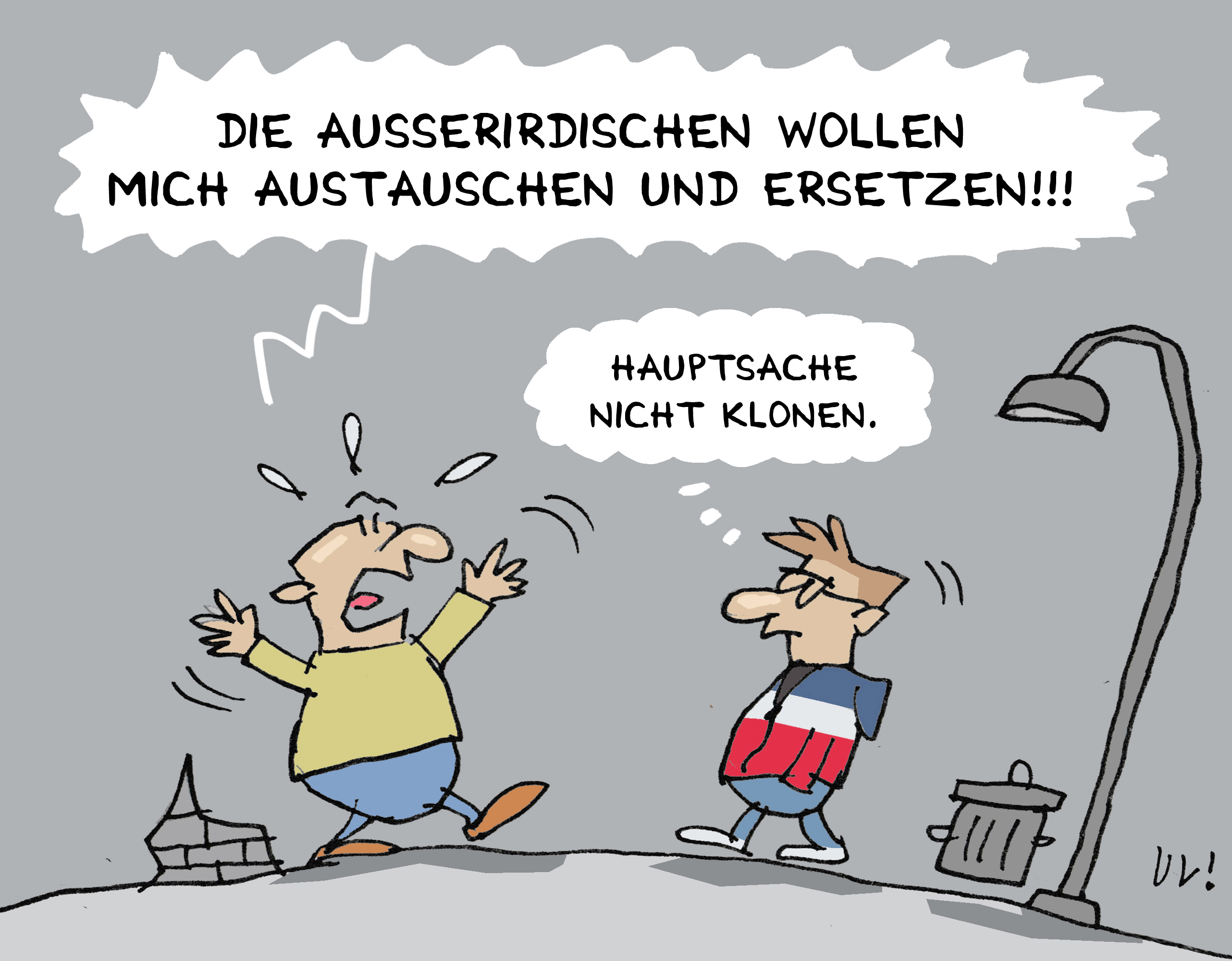 Cartoons Werden wir ausgetauscht? Datum: 3. Juni 2022Autor: uliwood 0 Kommentare Teilen mit: Auf X teilen (Wird in neuem Fenster geöffnet) X Auf Facebook teilen (Wird in neuem Fenster geöffnet) Facebook Einen Link per E-Mail an einen Freund senden (Wird in neuem Fenster geöffnet) E-Mail Gefällt mir Wird geladen … Ähnliche Beiträge